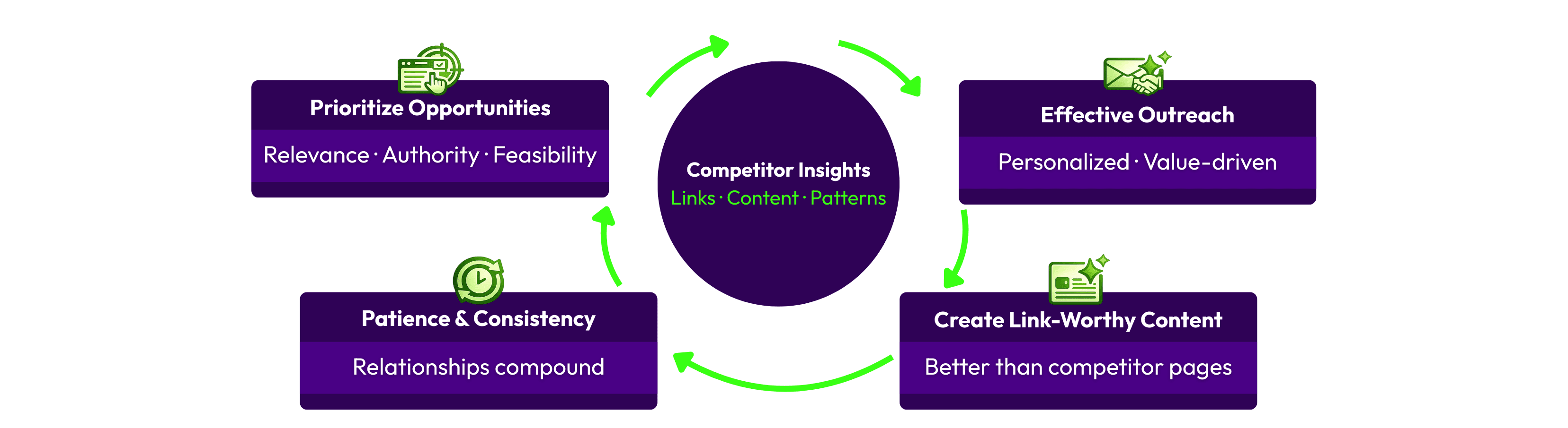 - Be Patient and Persistent: Link building is a gradual process that requires ongoing relationship-building, continuous content creation, and consistent outreach.