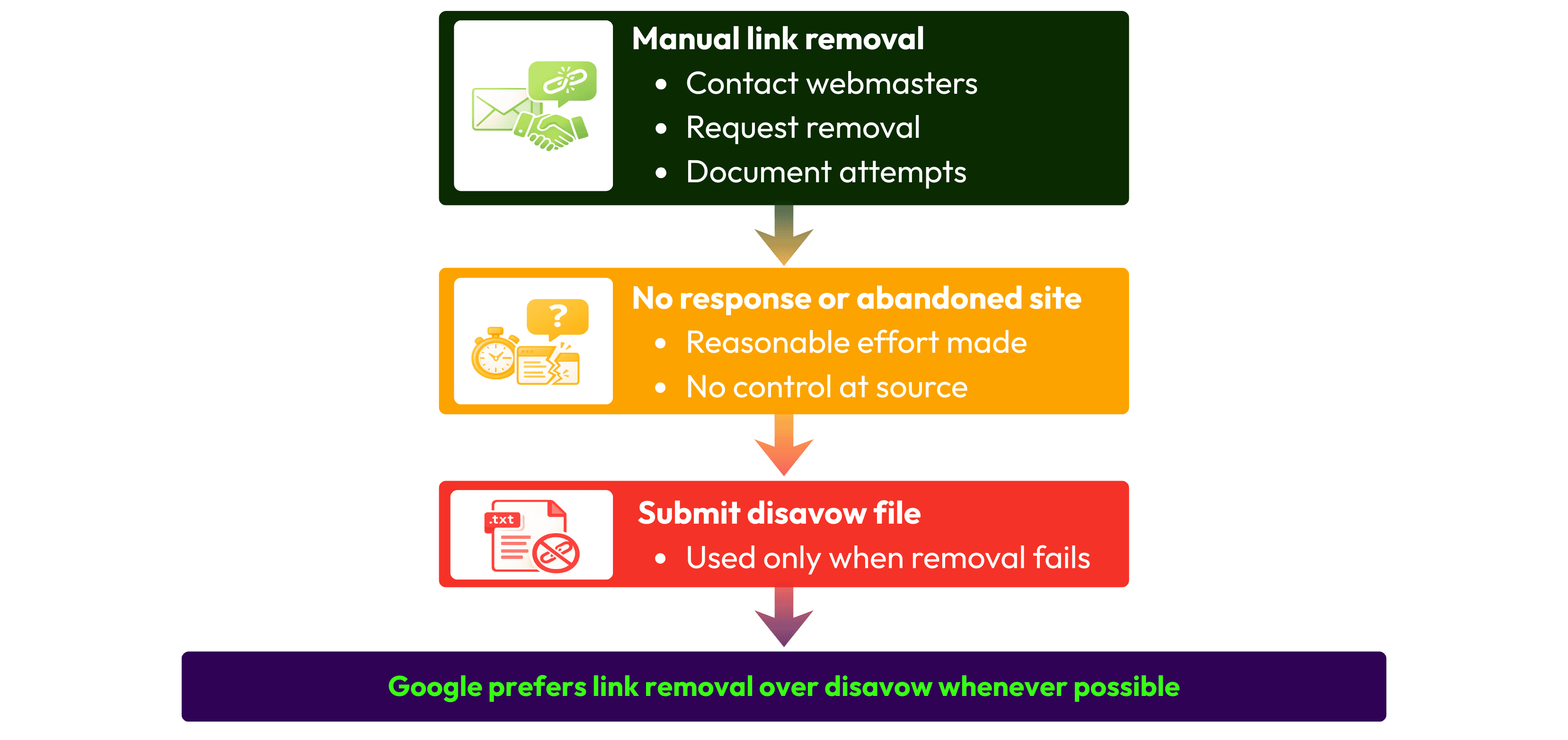 Before you even touch that disavow file, Google strongly prefers that you make a real effort to get bad links taken down at the source. This means reaching out to the webmasters of the sites linking to you and politely asking them to remove the link.