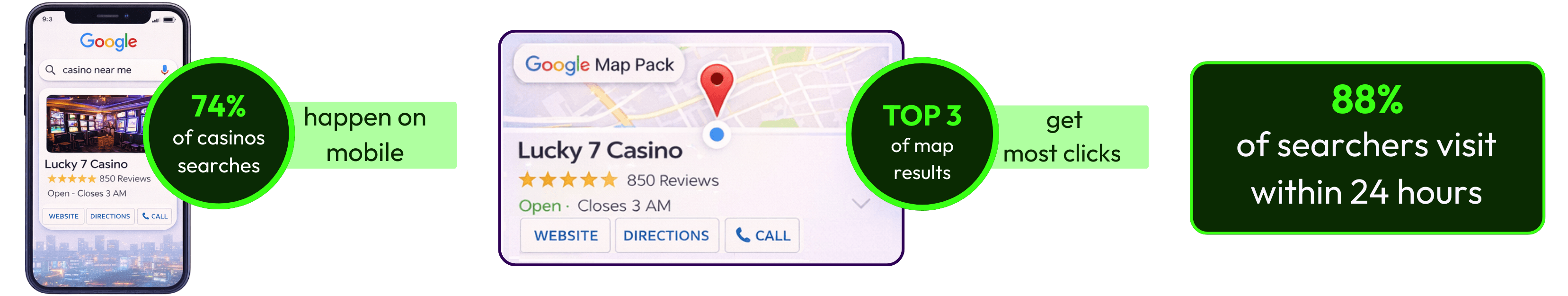 In an era when 74% of casino-related searches happen on mobile and 88% of searchers visit within 24 hours, showing up in those top map results isn’t optional, it’s survival.